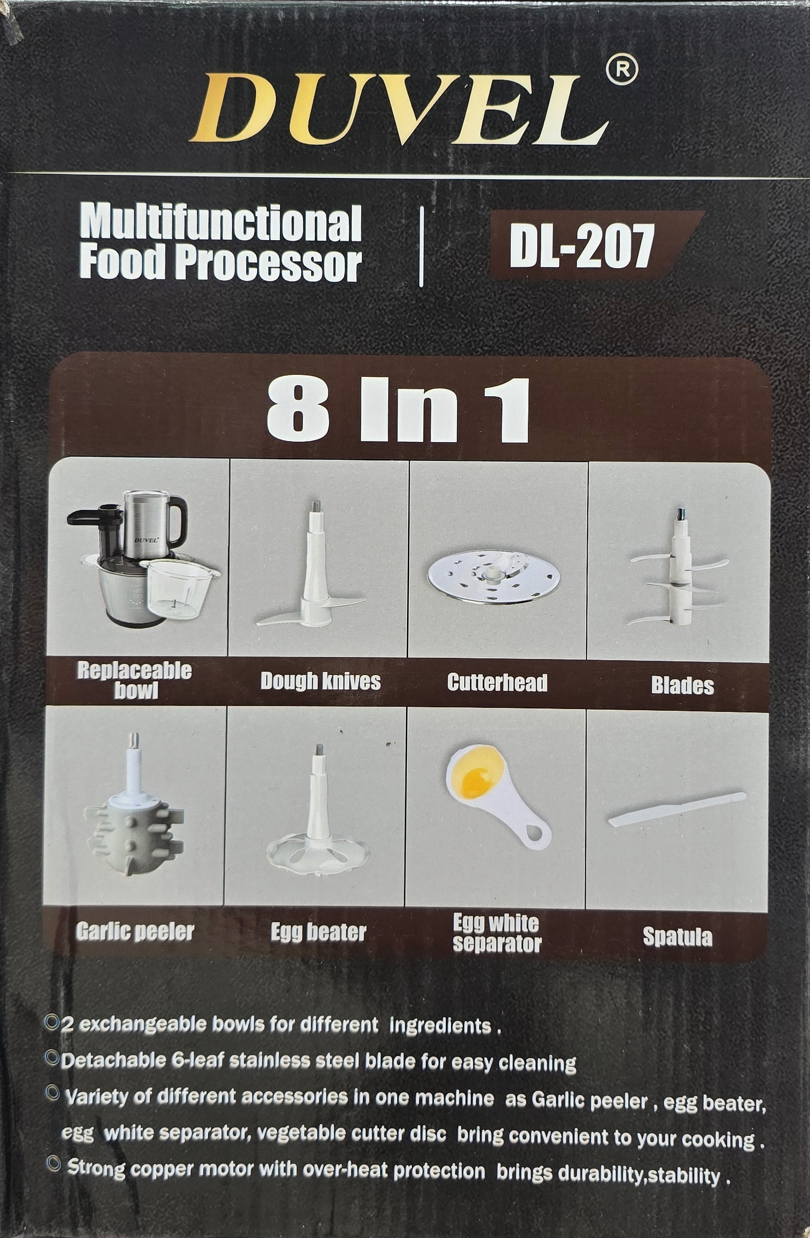 تعداد کاسه۲ عددتعداد کار۸ کارهجنس تیغهفولاد زد زنگوات۵۰۰واتخردکن انواع سبزی میوه گوشتظرفیت ۳ کیلیوقدرت موتورمسرنگمشکی نقره ایطول کابل برق۲ مترمدل طراحیساخت المان مدل DL207