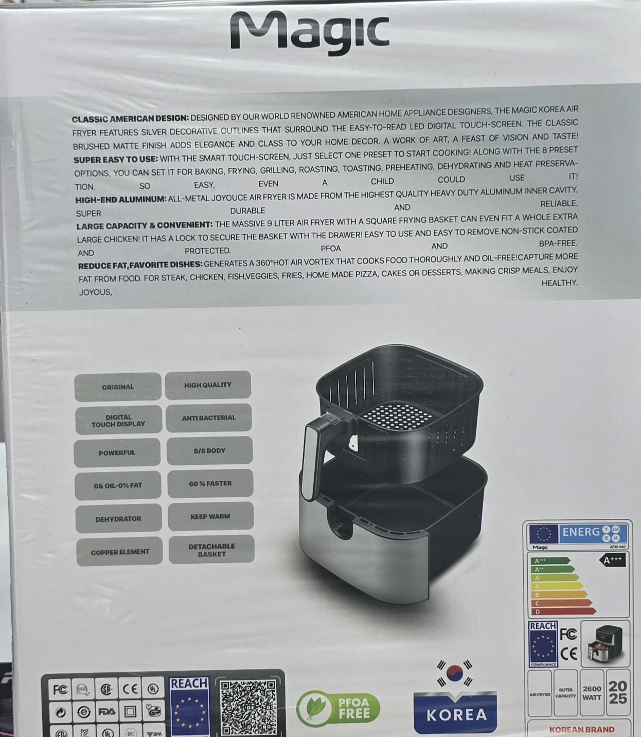 سرخکن مجیک کره مدل AFM440 ظرفیت ۹ لیتر ۲۶۰۰وات مصرف برق a+++ جنس ظرف سرامیک منو تمام تاج سفارش امارات
